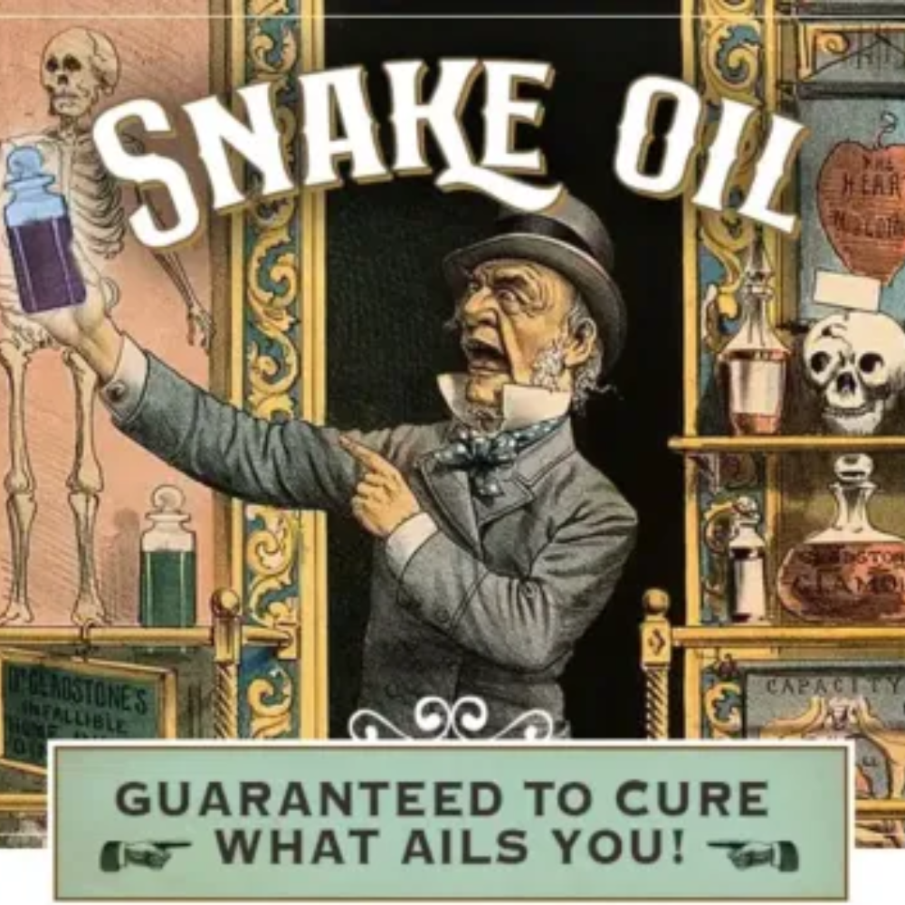 Khái niệm "Dầu rắn" có nguồn gốc từ thế kỷ 19 tại Mỹ, khi những tay buôn thuốc dạo rao bán những lọ dầu làm từ mỡ rắn (thường là giả) với lời hứa chữa bách bệnh. Thực chất, chúng không có giá trị y tế nào nhưng được thổi phồng nhờ kỹ năng tiếp thị xảo quyệt.